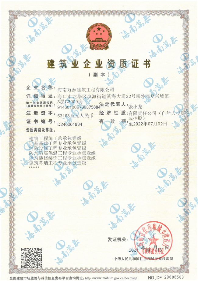 ? 2020 海南萬泰建筑工程有限公司 版權(quán)所有 ALL RIGHTS RESERVED.