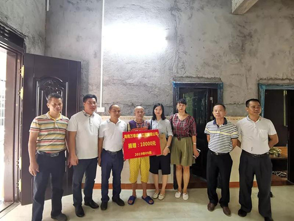 緊接著,海南萬(wàn)泰領(lǐng)導(dǎo)一行來(lái)到龍?zhí)伶?zhèn)新民村委會(huì)北喜村的低保貧困戶符執(zhí)仲家中。符執(zhí)仲家里只有他和他的兒子,小孩還在上學(xué),家境貧寒,每月依靠領(lǐng)取的低保金過(guò)日子,沒(méi)有能力將新房建好。海南萬(wàn)泰本著踐行愛(ài)心扶貧精神,捐贈(zèng)10000元給符執(zhí)仲支持建設(shè)新房。符執(zhí)仲表示感謝海南萬(wàn)泰建筑工程公司,今后會(huì)依靠雙手,努力賺錢(qián),爭(zhēng)取早日脫貧。