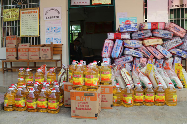 (現(xiàn)場(chǎng)發(fā)放愛心扶貧物資)