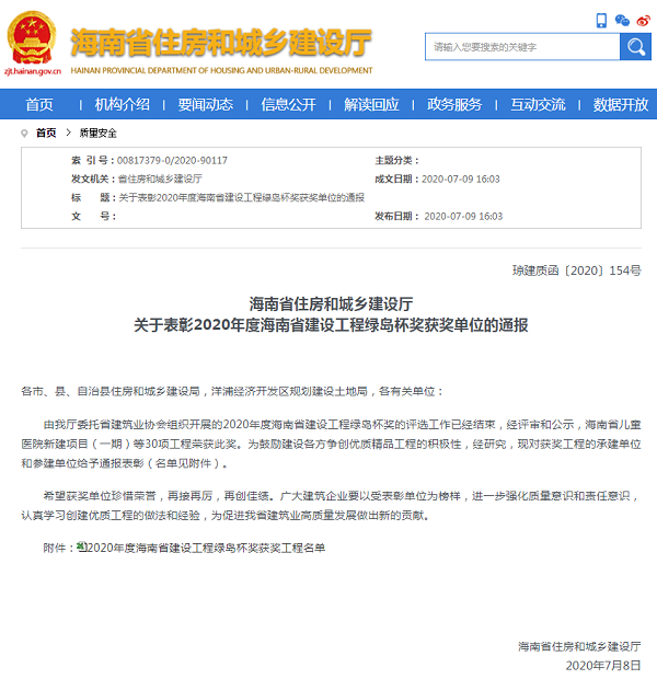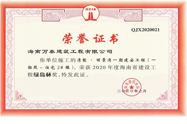 海南省建設(shè)工程“綠島杯”代表著海南省工程建設(shè)的最高質(zhì)量水平。海南萬(wàn)泰公司獲得此項(xiàng)榮譽(yù),不僅是對(duì)“清能·麗景灣一期建安工程(一標(biāo)段—住宅2#樓)質(zhì)量的肯定,也是對(duì)海南萬(wàn)泰公司管理水平的肯定。