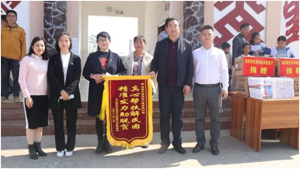 高石村委會向海南萬泰敬獻“真心幫扶解民困,精準發(fā)力助脫貧”錦旗,表達了對萬泰出資修建民心漫水橋的感恩。顏總雙手接過村民送上的錦旗,表示本著奉獻愛心、回饋社會的理念,希望通過萬泰的支持,當?shù)卮迕竦娜兆舆^得越來越好。