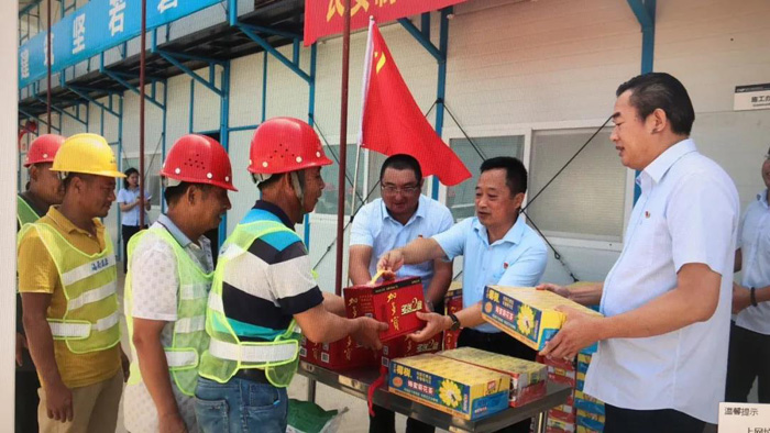 ▲高新區(qū)兩新工委領(lǐng)導(dǎo)到長安項(xiàng)目部開展送清涼活動(dòng)