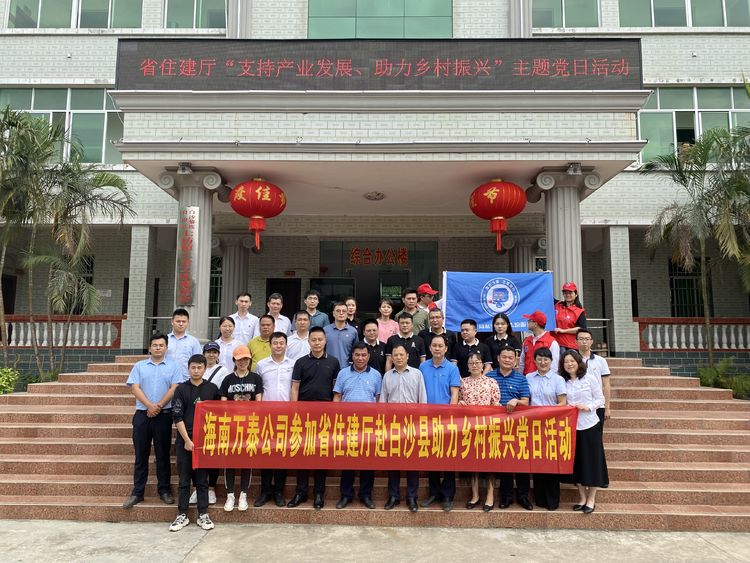 為發(fā)揮企業(yè)力量,推進鄉(xiāng)村產(chǎn)業(yè)發(fā)展,促進黨建工作同鄉(xiāng)村振興有效銜接,助力海南自由貿(mào)易港建設(shè),按照省住建廳《支持產(chǎn)業(yè)發(fā)展助力鄉(xiāng)村振興主題黨日活動方案》的相關(guān)要求,3月19日, 海南萬泰公司參加了省廳機關(guān)黨委組織的赴白沙縣七坊鎮(zhèn)高石村開展的主題黨日活動。省住建廳機關(guān)黨委專職副書記莫百超、辦公室副主任楊洲、廳相關(guān)部門負(fù)責(zé)人及中化學(xué)建設(shè)(海南)公司、中建三局集團(海南)公司、廣西建工集團四公司、湖南省第六工程公司、中誠投集團八局、中建中聯(lián)集團、湖南省湘天建設(shè)公司等企業(yè)相關(guān)人員參加了本次活動。