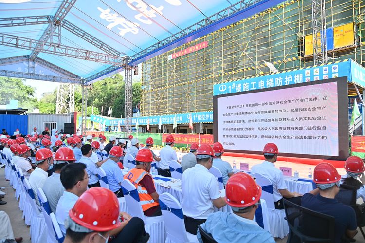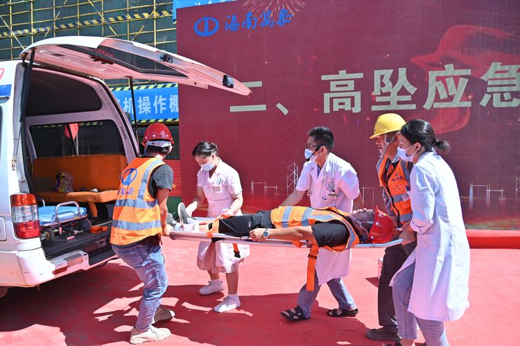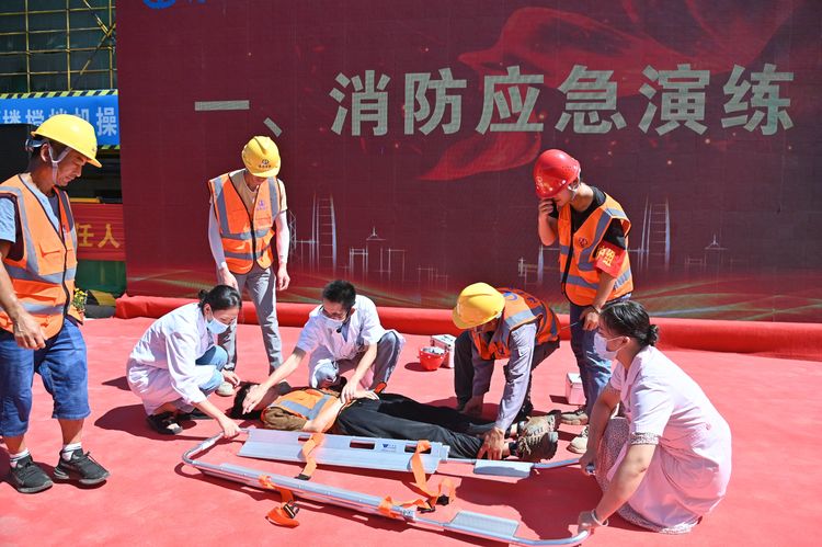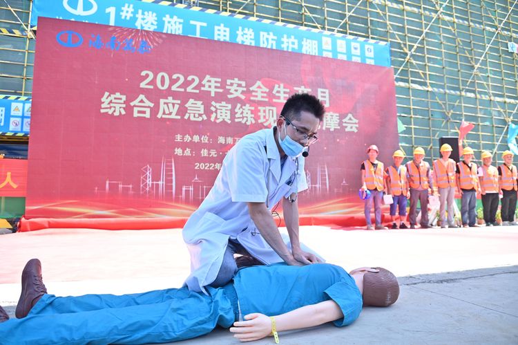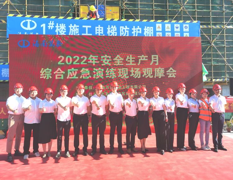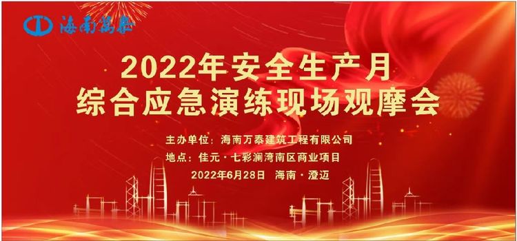 為貫徹落實(shí)習(xí)總書記關(guān)于安全生產(chǎn)重要論述,以黨建引領(lǐng)促進(jìn)安全生產(chǎn),全面提升項(xiàng)目質(zhì)量管理水平,增強(qiáng)安全責(zé)任意識,按照上級相關(guān)主管部門對開展“安全生產(chǎn)月”活動的通知要求,結(jié)合第21個(gè)全國“安全生產(chǎn)月”,2022年6月28日,海南萬泰建筑工程有限公司在七彩瀾灣南區(qū)商業(yè)項(xiàng)目部成功舉辦了2022年“安全生產(chǎn)月”綜合應(yīng)急演練觀摩會。省住建廳安全行業(yè)專家劉輝輝,澄邁縣住房和城鄉(xiāng)建設(shè)局莫丁,澄邁縣應(yīng)急管理局冼厚霖,澄邁縣質(zhì)監(jiān)站王廣彬,中豪威爾房地產(chǎn)有限公司甲方代表孫志明,海南藍(lán)城君潤科技有限公司副總經(jīng)理陳自衡、工程部經(jīng)理張凡春,杭州巨烽建設(shè)工程項(xiàng)目管理有限公司總監(jiān)朱冬風(fēng),公司常務(wù)副總經(jīng)理顏利、副總經(jīng)理吳坤芳等相關(guān)人員參加本次觀摩會。澄邁縣老城消防救援特勤站、同和醫(yī)院友情協(xié)助開展本次綜合應(yīng)急演練。