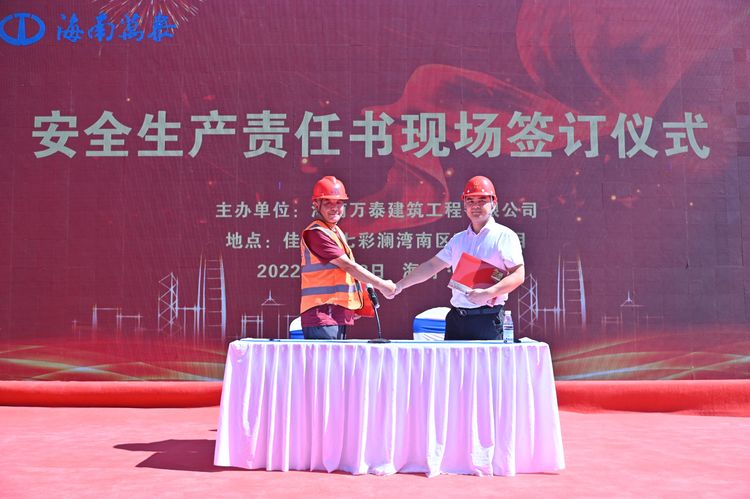 觀摩會上,佳元·七彩瀾灣南區(qū)項(xiàng)目經(jīng)理郭美龍當(dāng)眾宣讀了安全生產(chǎn)責(zé)任書,并與公司工程部部長侯領(lǐng)簽訂安全生產(chǎn)承諾書。侯領(lǐng)部長在發(fā)言中表示,舉辦此次觀摩會,將有利于我們以更堅(jiān)定的決心、更有力的舉措、更廣泛的動員,切實(shí)把安全生產(chǎn)工作抓嚴(yán)抓實(shí),希望大家通過在觀摩會上的學(xué)習(xí)交流,都能夠不斷地堅(jiān)定信念、強(qiáng)化本領(lǐng),共同為海南自貿(mào)港建設(shè)添磚添瓦,貢獻(xiàn)出一份力量。