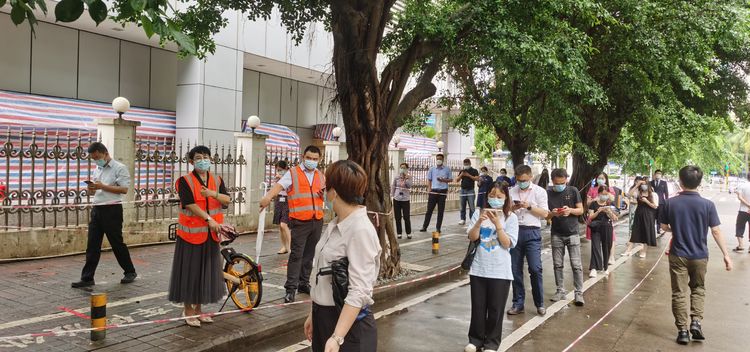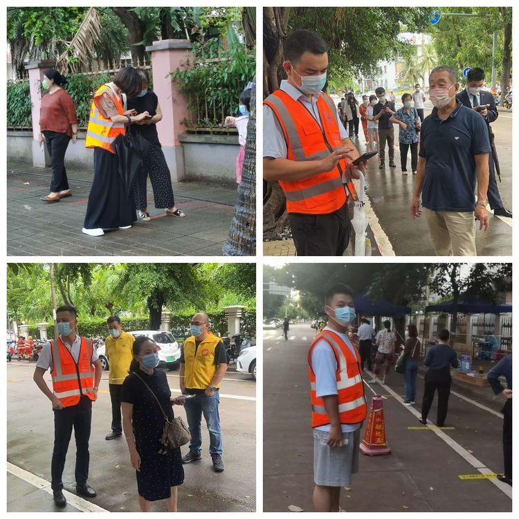本次疫情突如其來,核酸檢測工作時間緊迫,黨員志愿者們克服困難,到達指定點位開展協(xié)調(diào)工作。“您好,請按順序排好隊,保持一米距離;請大家提前打開健康碼,避免網(wǎng)絡擁堵影響檢測;你看這里就可以打開健康碼;請佩戴好口罩……”秩序維護、測量體溫、提供咨詢引導、解決群眾困難、帶領孕婦及行動不便的老人走綠色通道等等,從中午到晚上,大家各司其職,與醫(yī)務人員并肩作戰(zhàn),為檢測現(xiàn)場“保駕護航”,贏得了群眾的認可與好評。