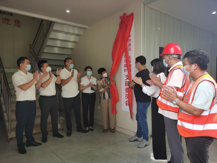 在主持人的指引下,大家移步為佳元·七彩瀾灣項目臨時黨支部進(jìn)行了揭牌,標(biāo)志著項目黨建工作邁上了新臺階,為項目部各項工作的開展奠定了組織基礎(chǔ)。