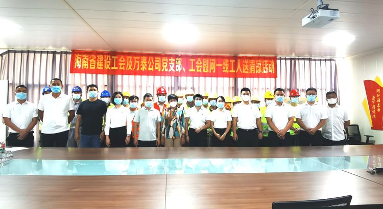 喜迎二十大,永遠(yuǎn)跟黨走。為進(jìn)一步提高黨組織在基層的影響力,增強黨組織在項目工地上的凝聚力,貫徹落實“項目建在哪,支部就設(shè)在哪”的理念,經(jīng)海南省住建行業(yè)黨委的批準(zhǔn),在黨的二十大召開前夕,萬泰公司承建的佳元·七彩瀾灣項目臨時黨支部揭牌儀式暨為一線工人送“清涼”活動在項目部現(xiàn)場圓滿舉辦。澄邁縣質(zhì)監(jiān)站黨支部書記、副站長蔡芙蓉、王培科長等一行,公司黨支部、工程部及項目有關(guān)人員參加了本次活動。