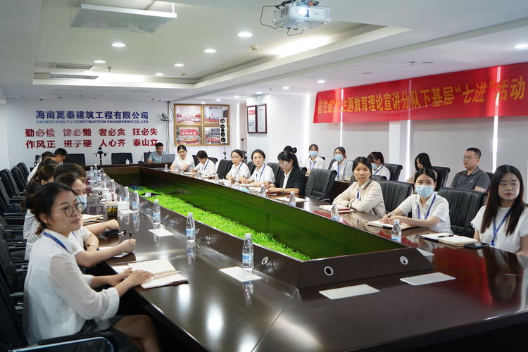 為深入學(xué)習(xí)黨的二十大精神,開展好學(xué)習(xí)貫徹習(xí)近平新時(shí)代中國特色社會主義思想主題教育,引導(dǎo)廣大黨員群眾深刻領(lǐng)悟“兩個(gè)確立”、增強(qiáng)“四個(gè)意識”、堅(jiān)定“四個(gè)自信”、做到“兩個(gè)維護(hù)”,推動黨的二十大精神在基層走深走實(shí),2023年5月25日,海南省住房和城鄉(xiāng)建設(shè)廳人事處二級調(diào)研員、行業(yè)黨委專職副書記李述朝,黨建指導(dǎo)員陳小娜走進(jìn)海南萬泰公司開展學(xué)習(xí)貫徹習(xí)近平新時(shí)代中國特色社會主義思想主題教育理論宣講“七進(jìn)”活動。萬泰公司黨員及員工近50人參加了本次宣講活動。