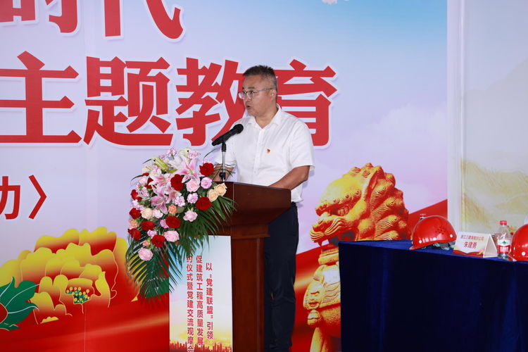 ??谑薪ㄔO(shè)工程質(zhì)量安全監(jiān)督站黨委書記、站長(zhǎng)符志明在講話中表示將以江東片區(qū)“黨建聯(lián)盟”為紐帶,進(jìn)一步做好服務(wù)企業(yè)的各項(xiàng)工作,推動(dòng)工程項(xiàng)目質(zhì)量安全發(fā)展。