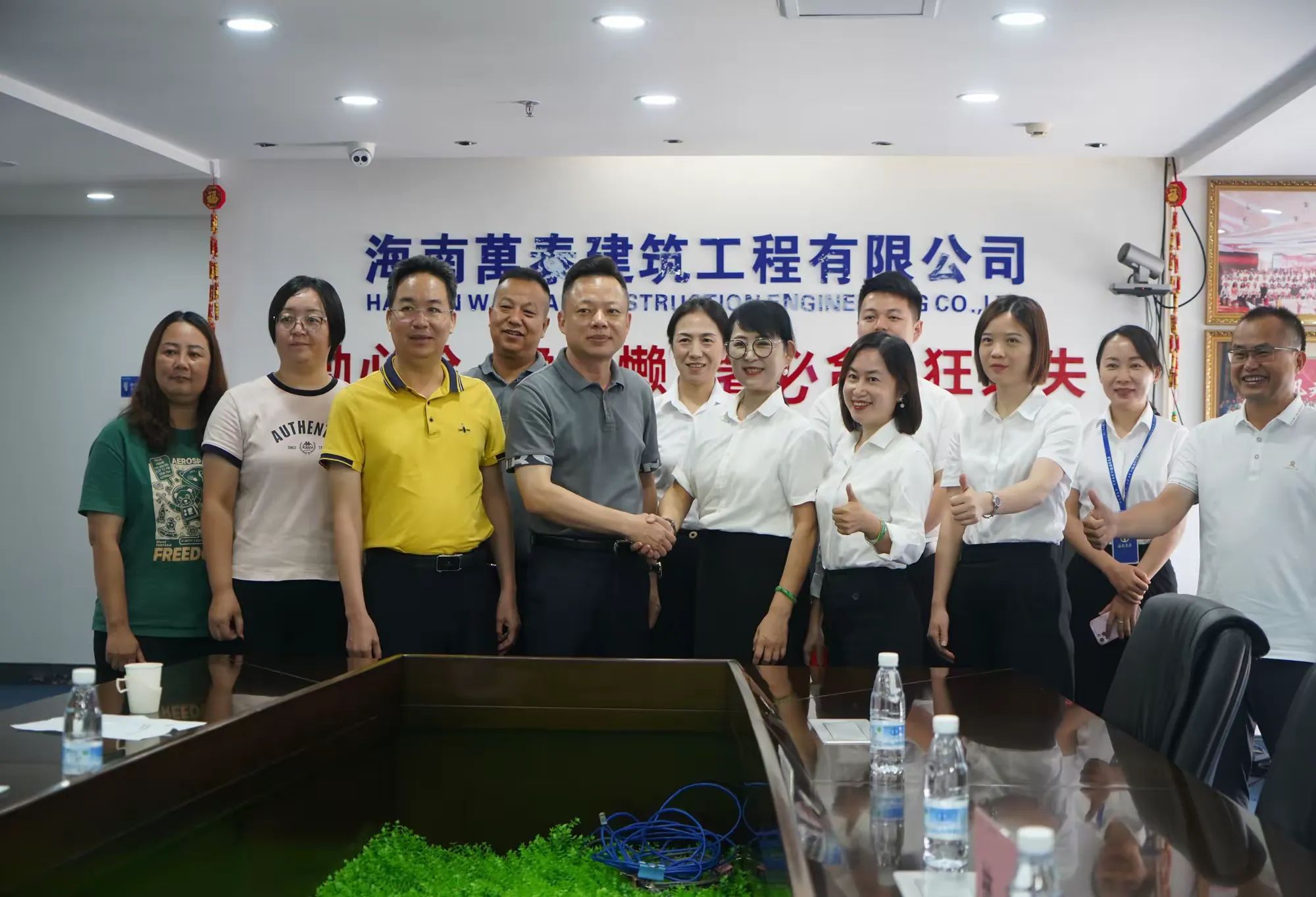 隨后周炳才書記一行觀看了海南萬泰建筑工程有限公司宣傳片。孟書記代表公司對(duì)海職院領(lǐng)導(dǎo)一行的走訪交流示以熱烈歡迎,并表示海職院作為海南省第一所獨(dú)立設(shè)置的公辦高職院校,教資豐富,人才培養(yǎng)水平優(yōu)越,公司創(chuàng)始人便是來自于海職院的優(yōu)秀人才,近些年海職院的多個(gè)優(yōu)秀畢業(yè)生在萬泰公司不斷成長(zhǎng),為企業(yè)發(fā)展作出了諸多貢獻(xiàn)。下一步,萬泰公司將進(jìn)一步深化與海職院的交流學(xué)習(xí),在黨建工作、校企合作、學(xué)生就業(yè)等多方面進(jìn)行深入合作,達(dá)成合作雙贏的共識(shí),為海南自貿(mào)港建設(shè)做出應(yīng)有的貢獻(xiàn)。