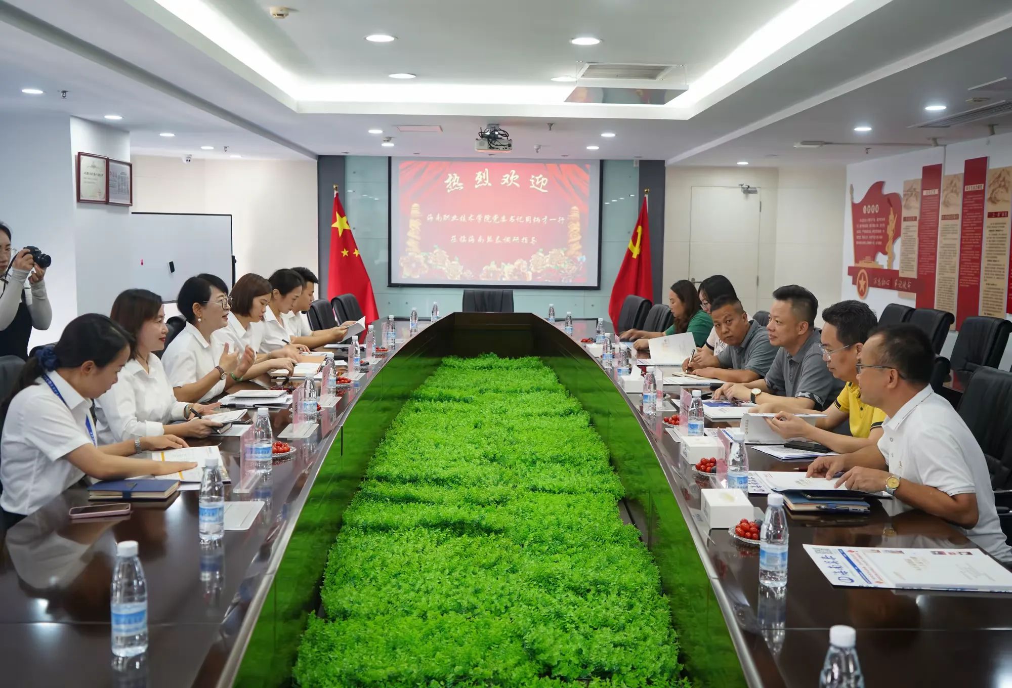 為進(jìn)一步加強(qiáng)校企之間的合作交流,6月14日,海南職業(yè)技術(shù)學(xué)院黨委書記周炳才,黨委委員、副校長(zhǎng)符興干等一行蒞臨海南萬泰公司開展了座談交流活動(dòng),雙方就黨建工作、校企合作、學(xué)生就業(yè)等方面進(jìn)行了深入探討。公司有關(guān)領(lǐng)導(dǎo)及部門負(fù)責(zé)人參加了本次活動(dòng)。