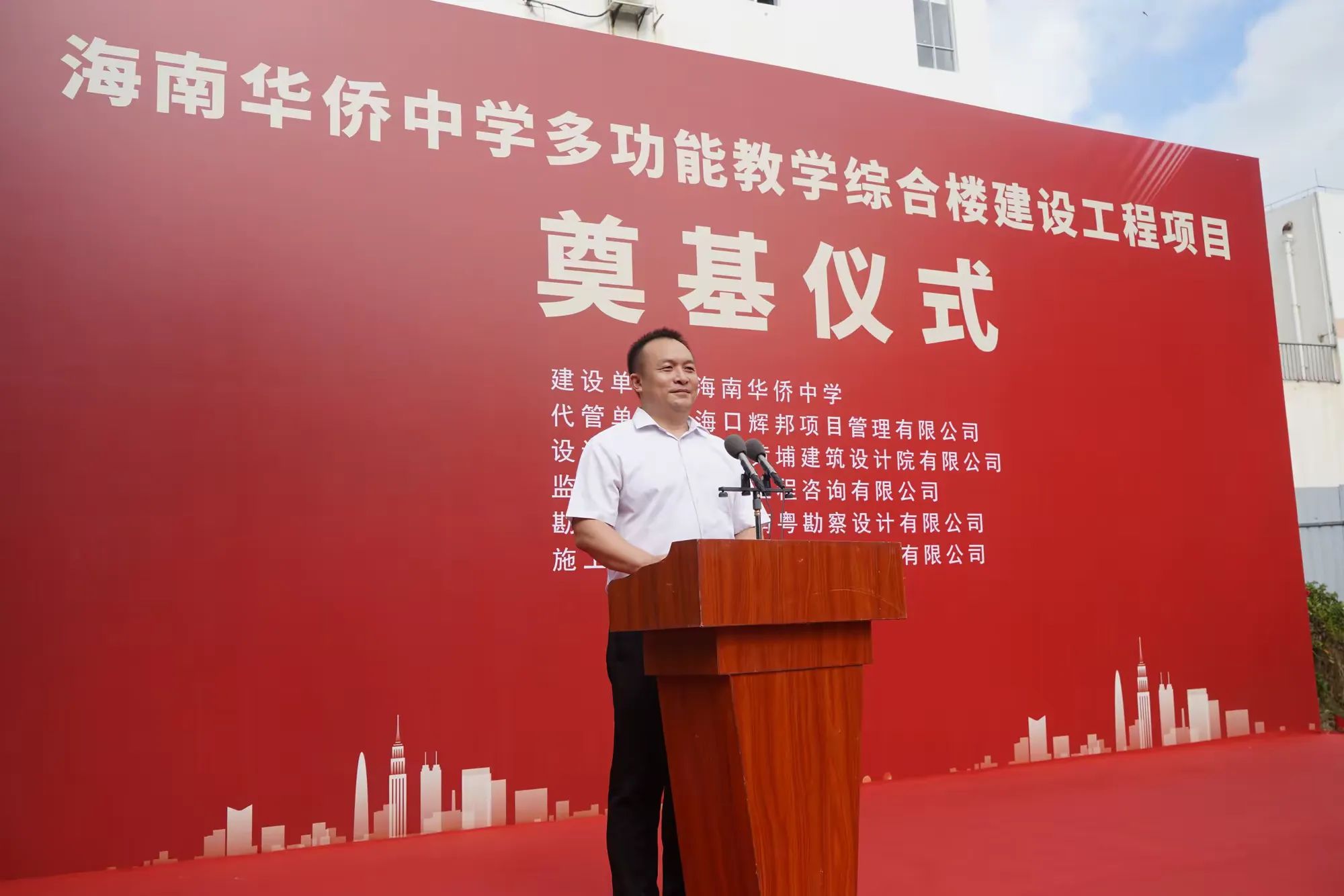 七月綠意爭相艷,書生意氣冠瓊州。7月19日,由海南萬泰建筑工程有限公司承建的海南華僑中學(xué)多功能教學(xué)綜合樓建設(shè)工程項(xiàng)目舉行開工儀式。??谑邪l(fā)改委黨組成員、副主任莊華東,海南華僑中學(xué)黨委副書記、校長張偉,黨委委員、副校長吳撼宇,??谑谐峭都瘓F(tuán)黨委副書記、董事、總經(jīng)理孫傳志以及代管、監(jiān)理、施工單位相關(guān)人員參加了本次活動(dòng)。儀式由海南華僑中學(xué)副校長吳澤純主持。