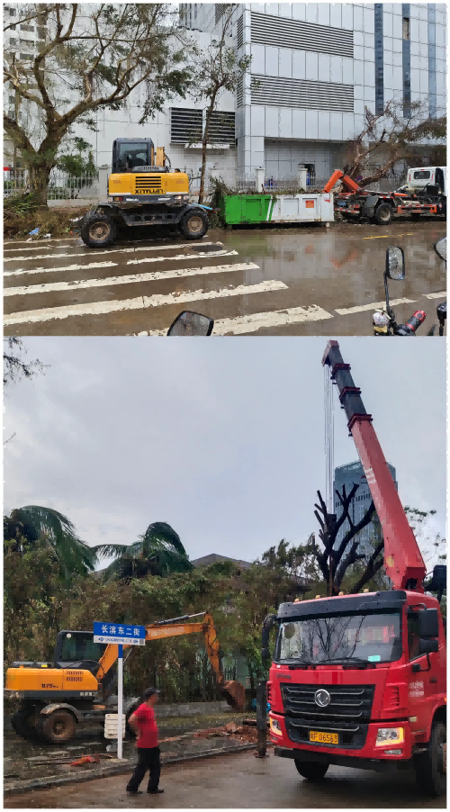 9月9日下午,海南萬泰公司組織近40名由黨員、職工組成的志愿服務(wù)隊(duì)伍,調(diào)配輪式挖機(jī)2臺、運(yùn)輸車5輛、抓機(jī)1臺以及油鋸、掃把、鐵鍬等一批小型工具分批前往國興大道、龍華區(qū)金海路開展路障清理志愿服務(wù)活動。經(jīng)過一下午的努力,所負(fù)責(zé)區(qū)域道路已順利通暢。