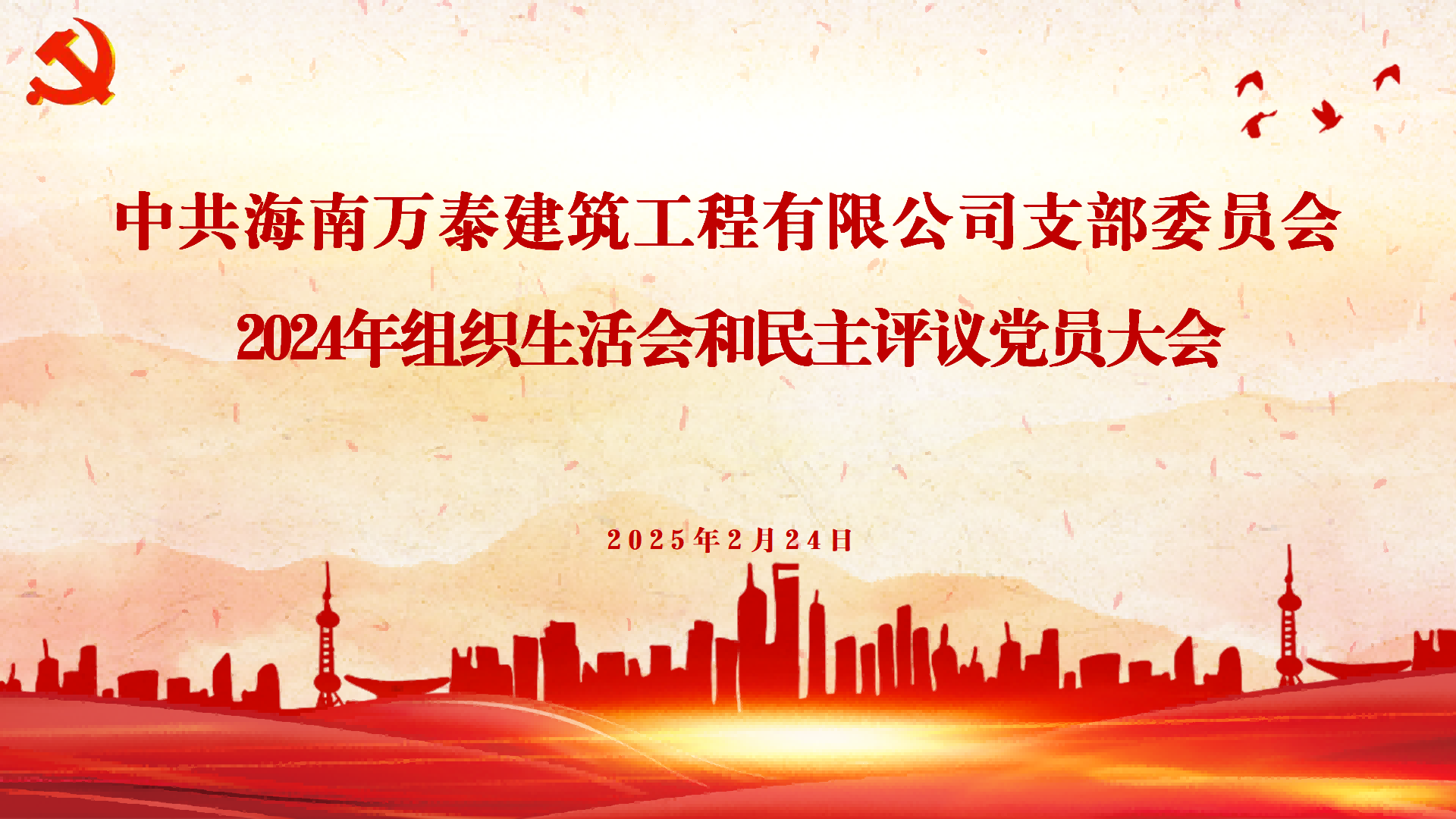 按照省住建行業(yè)黨委統(tǒng)一安排部署,2024年2月24日下午,中共海南萬泰建筑工程有限公司支部委員會(huì)召開了2024年組織生活會(huì)和民主評議黨員大會(huì)。支部黨員、入黨積極分子參加本次會(huì)議,會(huì)議由專職書記孟晨同志主持。