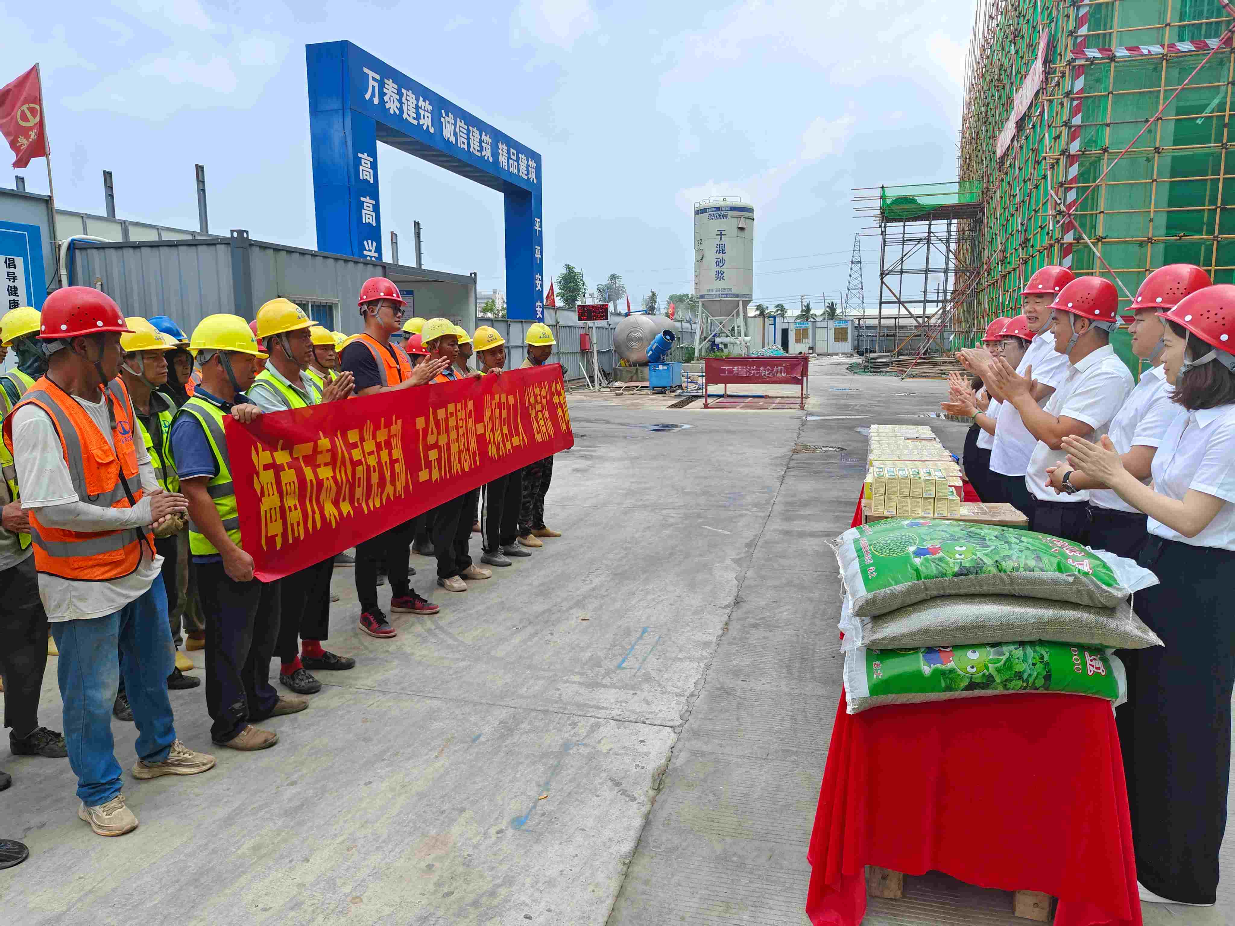 炎炎夏日送清涼,點點滴滴暖人心。4月27日、30日,為表達(dá)對堅守在工作崗位的項目一線工友的關(guān)懷與敬意,在五一國際勞動節(jié)即將到來之際,海南萬泰公司總經(jīng)理顏利帶隊赴海口江東新區(qū)國際消費精品產(chǎn)業(yè)港等項目現(xiàn)場,開展了“送清涼,暖人心”慰問活動,為廣大一線工友們送去節(jié)日祝福和清涼物資。公司黨支部、工會及相關(guān)部門負(fù)責(zé)人參加了本次活動。