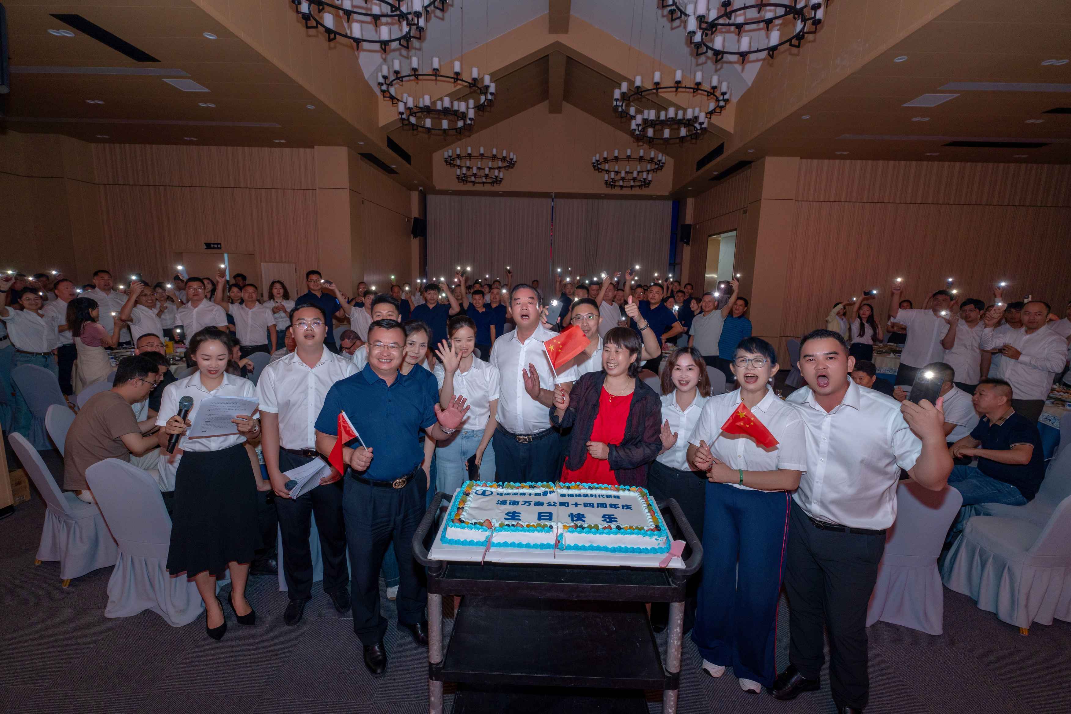 星光璀璨慶華誕,榮耀共享啟新篇。當(dāng)晚,周年慶晚會在芳園國際藝術(shù)村聚福樓正式開始,現(xiàn)場160余人共襄盛舉,共同慶祝公司成立十四周年暨中國共產(chǎn)黨成立104周年。開場舞《苗族魂》中那充滿民族風(fēng)情的舞姿瞬間點燃了全場的氣氛,活動也在主持人激情澎湃的開場祝賀聲與全體人員的共唱《國歌》聲中拉開帷幕。