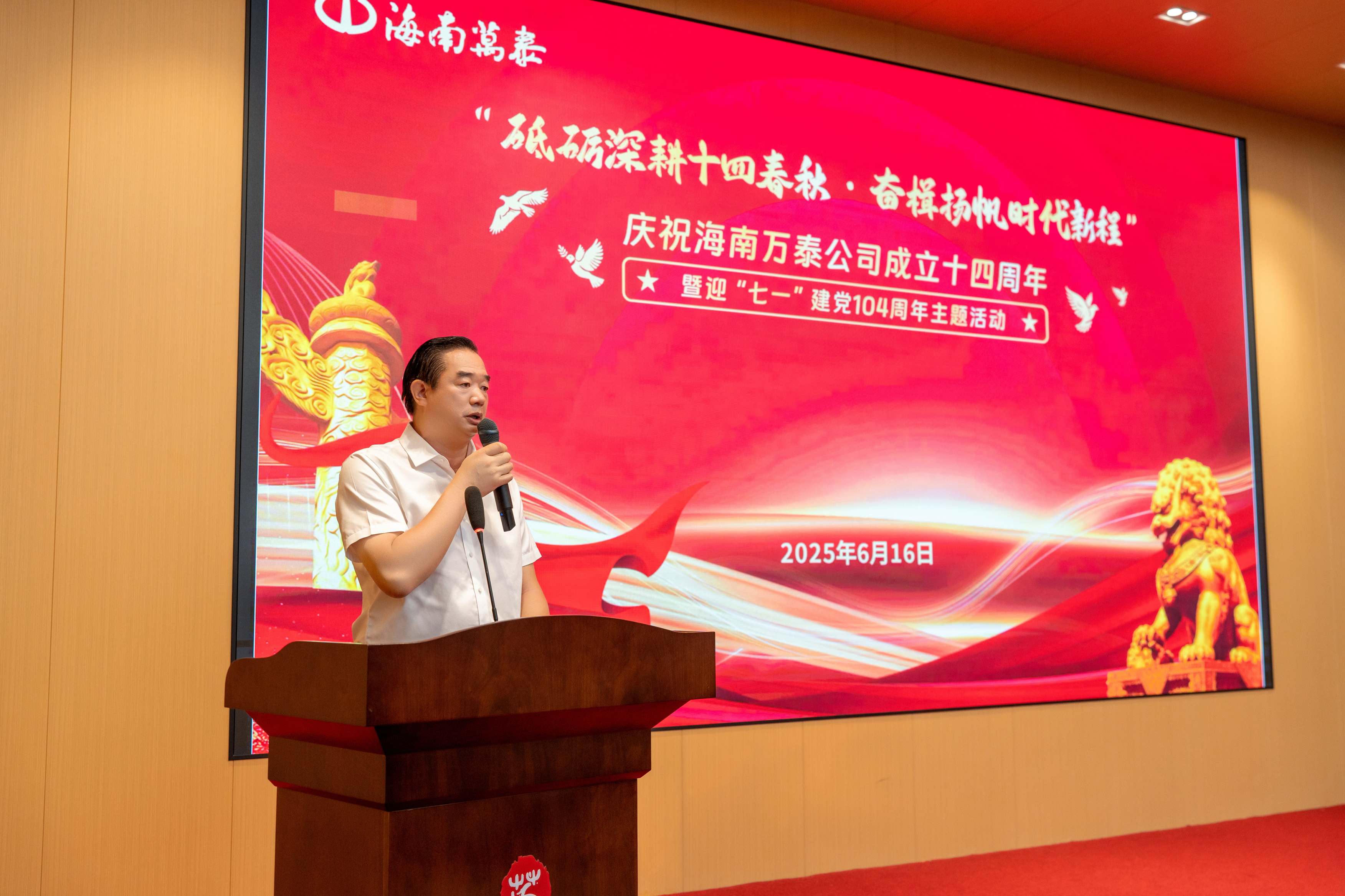 公司總經(jīng)理顏利發(fā)表了熱情洋溢的致辭。顏利首先對各級主管部門以及社會各界在萬泰發(fā)展過程中給予的關(guān)心與支持表示感謝,并深情回顧了公司十四年的發(fā)展歷程,從白手起家到如今在建筑行業(yè)屹立不倒,一路走來充滿艱辛與挑戰(zhàn)。每一個工程項目,都凝聚著大家的心血,都見證了萬泰人的成長與進(jìn)步。正是這份“鑄萬泰精品,立萬泰豐碑”理念的堅持與執(zhí)著,讓萬泰能夠在激烈的市場競爭中贏得了上級主管部門、社會各界及客戶的信任與認(rèn)可,獲得了多個榮譽(yù)與獎項。他還表示,未來公司將繼續(xù)堅持黨建引領(lǐng),立足中心業(yè)務(wù),以市場需求為導(dǎo)向,持續(xù)為客戶提供優(yōu)質(zhì)服務(wù),打造更多精品工程,并號召全體員工攜手并肩,在自貿(mào)港封關(guān)運作的偉大事業(yè)中貢獻(xiàn)萬泰力量,續(xù)寫輝煌篇章。廣東、湖北分公司以及湖北隆海公司等也通過視頻從遠(yuǎn)方發(fā)來了誠摯又溫馨的祝賀。