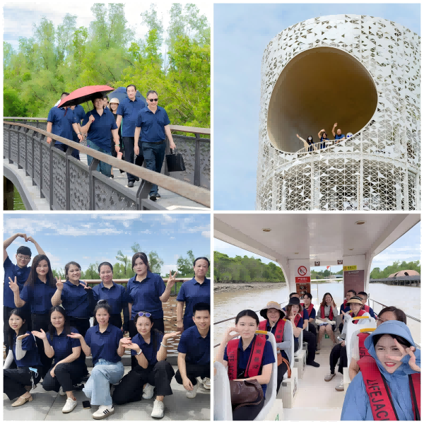 活動當(dāng)日,風(fēng)和日麗,晴空萬里,全體人員精神飽滿地開啟了一天行程。上午,公司成員齊聚東寨港紅樹林,在碧波蕩漾的紅樹林濕地,大家乘船探秘、登臨月之塔、漫步生態(tài)棧道,親身感受海南獨特的自然生態(tài)魅力,并在景區(qū)合影留念,記錄下綠色發(fā)展的企業(yè)擔(dān)當(dāng)。在輕松愉快的氛圍中,團(tuán)隊凝聚力得到了增強(qiáng)。