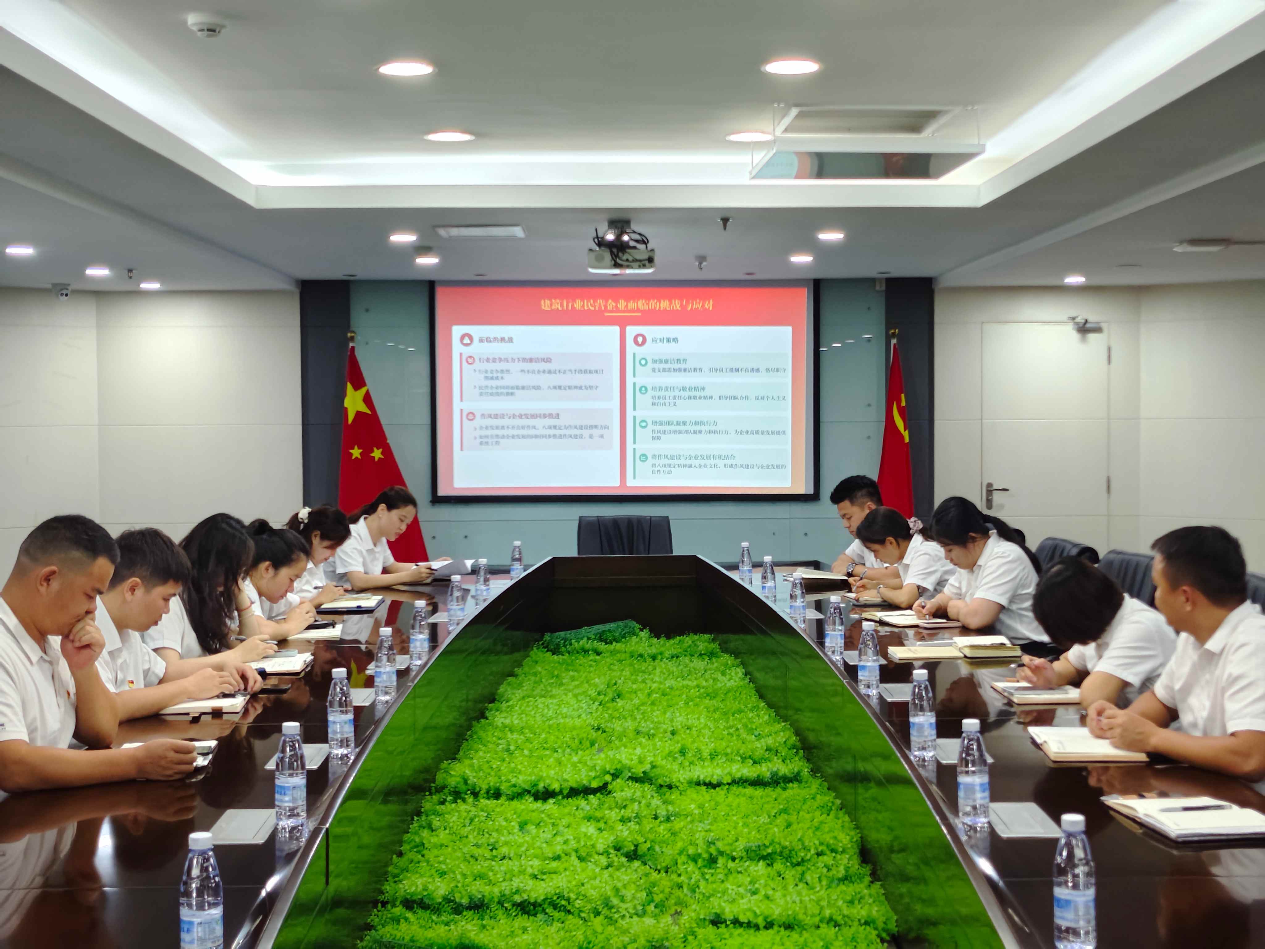 隨后,曹珊珊書記以《筑牢思想防線 涵養(yǎng)清風正氣 以優(yōu)良作風護航企業(yè)高質(zhì)量發(fā)展》為題向與會黨員、入黨積極分子講授了一堂黨課,從重要意義、具體體現(xiàn)、面臨的挑戰(zhàn)與應(yīng)對策略,以及如何踐行中央八項規(guī)定精神等四個方面進行了詳細闡述。曹珊珊表示,中央八項規(guī)定精神是新時代全面從嚴治黨的標志性舉措,對民營企業(yè)而言,是提升核心競爭力、實現(xiàn)長遠發(fā)展的內(nèi)在要求。她結(jié)合公司實際,針對行業(yè)競爭壓力下的廉潔風險和作風建設(shè)與企業(yè)發(fā)展的同步推進等問題,提出要充分發(fā)揮黨支部引領(lǐng)以及黨員帶頭作用,加強廉潔教育,培養(yǎng)員工責任心和敬業(yè)精神,以優(yōu)良作風保障企業(yè)高質(zhì)量健康發(fā)展。