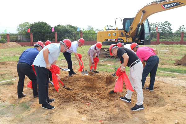 各位領(lǐng)導(dǎo)手執(zhí)鐵鍬為項目奠基鏟土
