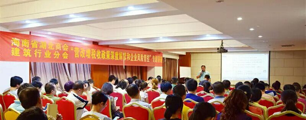 2016年4月16日,海南省湖北商會、海南省湖北商會建筑行業(yè)分會,聯(lián)合尤尼泰(海南)稅務(wù)師事務(wù)所在??谙憬瓬厝獓H大酒店共同舉辦了“營改增稅收政策深度解讀和企業(yè)風(fēng)險管控”專題講座。海南萬泰建筑工程有限公司總經(jīng)理、海南省湖北商會建筑行業(yè)分會秘書長張小龍參加并主持了本期講座。