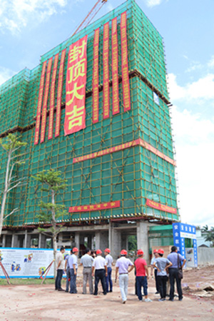 自今年二月份瓊?!靶胚_(dá)?銀海御湖(一期)”項(xiàng)目開(kāi)工以來(lái),海南萬(wàn)泰施工團(tuán)隊(duì)不畏艱辛,克服海南高溫多雨的氣候特點(diǎn),保質(zhì)、保量,緊張施工,嚴(yán)格把控項(xiàng)目的各個(gè)施工細(xì)節(jié),“信達(dá)?銀海御湖(一期)”項(xiàng)目9#樓率先完成主體封頂。