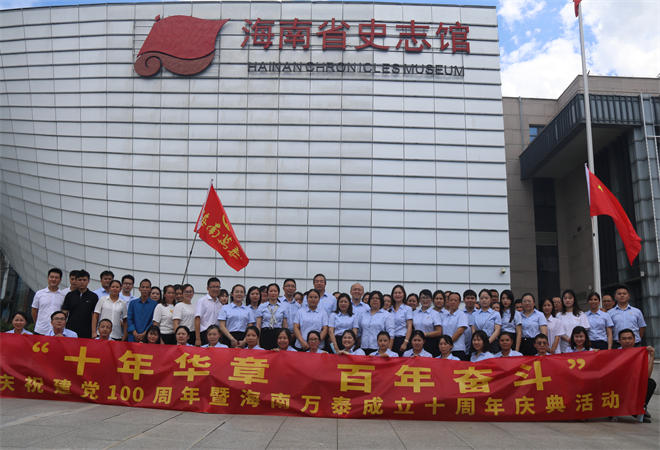 6月16日,海南萬泰慶祝建黨100周年暨公司成立十周年慶典活動(dòng)圓滿舉辦?;顒?dòng)以“十年華章,百年奮斗”為主題,組織全體黨員、職工前往海南省史志館參觀學(xué)習(xí)及到中視影院進(jìn)行紅色教育主題黨日活動(dòng)。