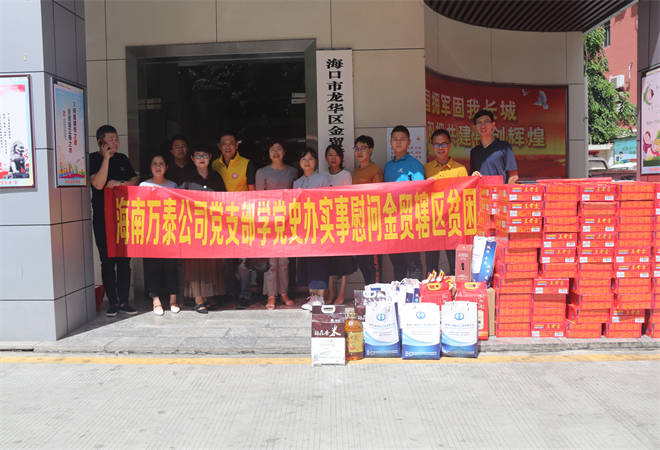 5月26日下午,海南萬泰公司黨支部、工會組織開展“學(xué)黨史、踐初心、辦實事、獻(xiàn)愛心”活動,為金貿(mào)轄區(qū)部分貧困家庭送去了慰問金,米、油、紅薯等生活物資。