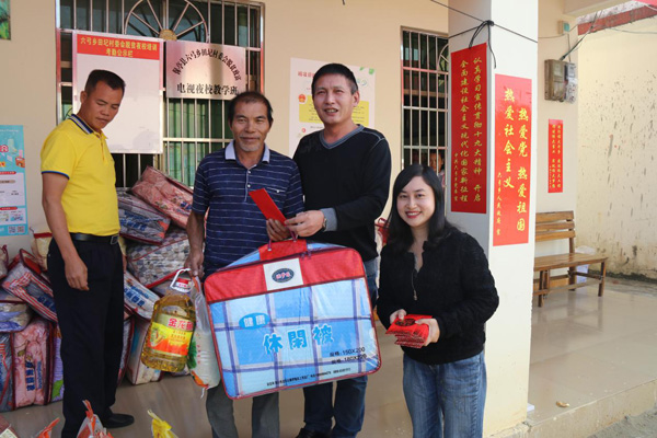 本次扶貧活動(dòng),海南萬泰共送出大米、糧油、棉被等一批愛心扶貧物資,并為每戶村民準(zhǔn)備了800元現(xiàn)金紅包。