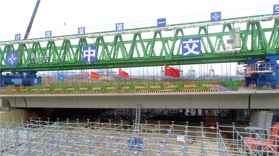 據(jù)介紹,預(yù)制構(gòu)件在中交二航局中山預(yù)制廠集中預(yù)制,經(jīng)過171公里船舶海運(yùn)和3公里陸運(yùn)至施工現(xiàn)場(chǎng),采用中交二航局自主研發(fā)的TP120預(yù)制裝配式一體化架橋機(jī)進(jìn)行裝配施工。該架橋機(jī)具有施工過程占地面積小、對(duì)沿線地面運(yùn)輸條件要求低、操作平臺(tái)和調(diào)位系統(tǒng)精確可靠,以及上下部構(gòu)件可同時(shí)安裝連接等優(yōu)勢(shì),特別適用于城市交通繁忙地區(qū)的市政橋梁工程建設(shè)。