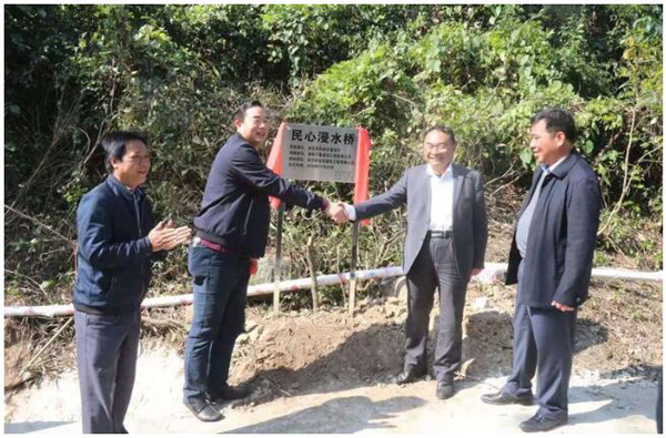 活動儀式由廳辦公室主任莫百超主持。陳孝京副廳長和顏利副總共同為民心漫水橋揭牌。陳副廳長表示非常感謝萬泰,為當?shù)乩习傩崭闪艘患蠛檬隆?/span>