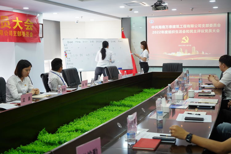 為全面貫徹落實(shí)習(xí)近平新時(shí)代中國(guó)特色社會(huì)主義思想,深入學(xué)習(xí)黨的二十大、省第八次黨代會(huì)精神,按照省住建行業(yè)黨委統(tǒng)一安排部署,2023年3月9日下午,中共海南萬(wàn)泰建筑工程有限公司支部委員會(huì)召開(kāi)了2022年度組織生活會(huì)和民主評(píng)議黨員大會(huì)。省住建行業(yè)黨委委員孫文璽蒞臨現(xiàn)場(chǎng)指導(dǎo),萬(wàn)泰黨支部全體黨員參加本次會(huì)議,會(huì)議由黨支部副書(shū)記孟晨同志主持。