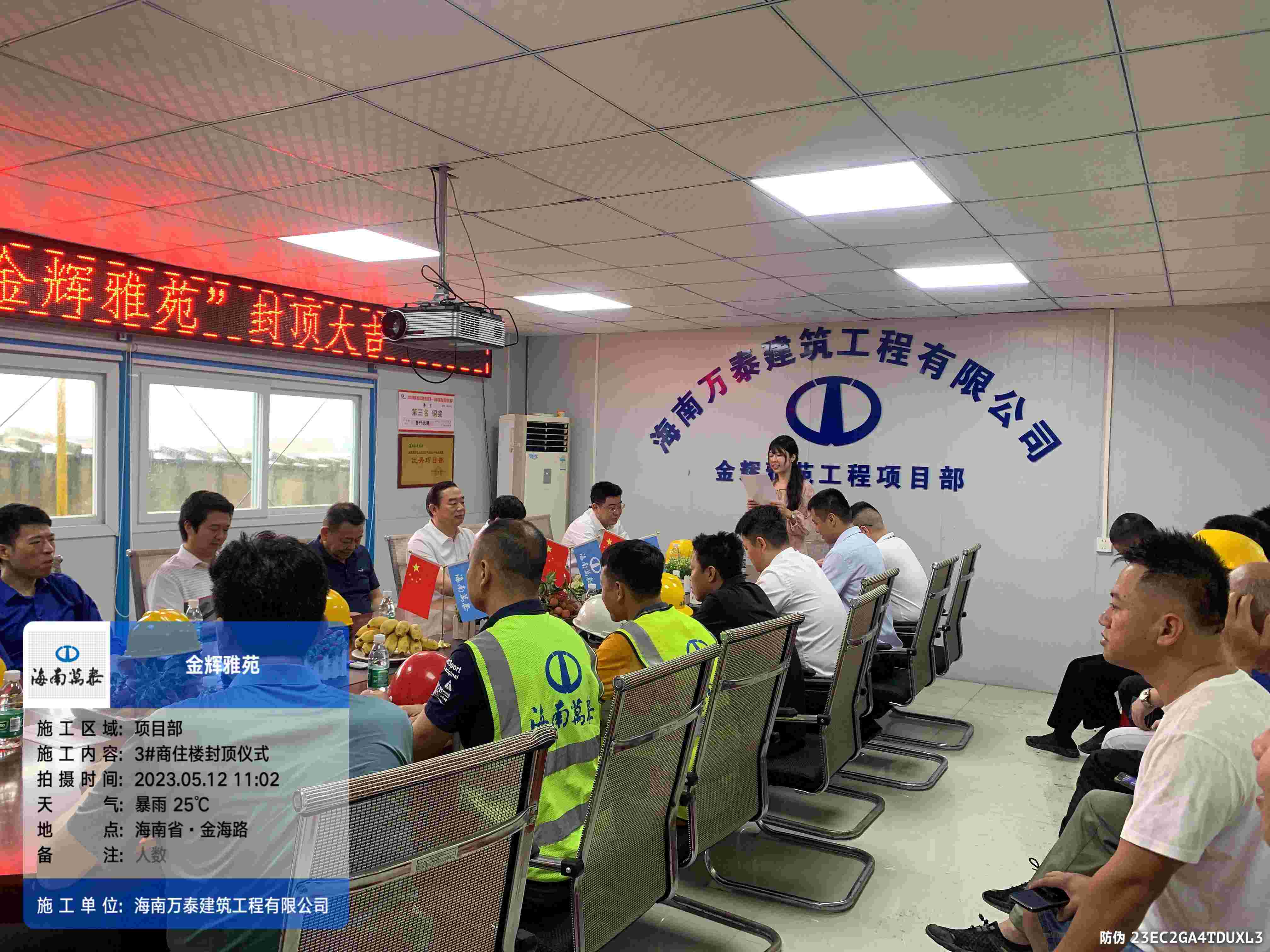金梁拔地千年固,玉柱擎天萬事興。2023年5月12日上午,海南萬泰承建的瓊海金輝雅苑項目喜封金頂,封頂儀式在項目工地現(xiàn)場圓滿舉辦,海南輝景房地產(chǎn)開發(fā)有限責(zé)任公司董事長劉輝、股東文靖杰、總經(jīng)理陳小勇,海南萬泰建筑工程有限公司常務(wù)副總經(jīng)理顏利、工程一處總助袁軍、工程部副部長張豪杰、項目經(jīng)理劉達濱以及監(jiān)理等參與和支持項目建設(shè)的各級領(lǐng)導(dǎo)出席了本次活動,共同見證這一喜慶時刻。
