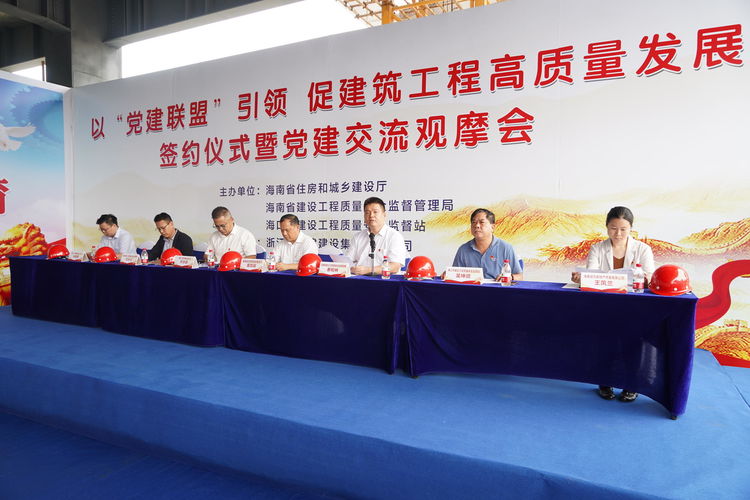 為深入學(xué)習(xí)貫徹習(xí)近平新時(shí)代中國(guó)特色社會(huì)主義思想,深化黨建聯(lián)創(chuàng)共建,推動(dòng)黨建工作進(jìn)一步走深走實(shí),按照省質(zhì)安局的通知要求,近日,海南萬泰公司黨支部組織工程部、綜合部等有關(guān)人員在浙江三建江畔濠庭項(xiàng)目參加了海南省建設(shè)工程質(zhì)量安全監(jiān)督管理局黨建聯(lián)盟簽約儀式暨黨建交流觀摩會(huì)。 省質(zhì)安局黨支部書記、局長(zhǎng)蔡和林主持了會(huì)議。