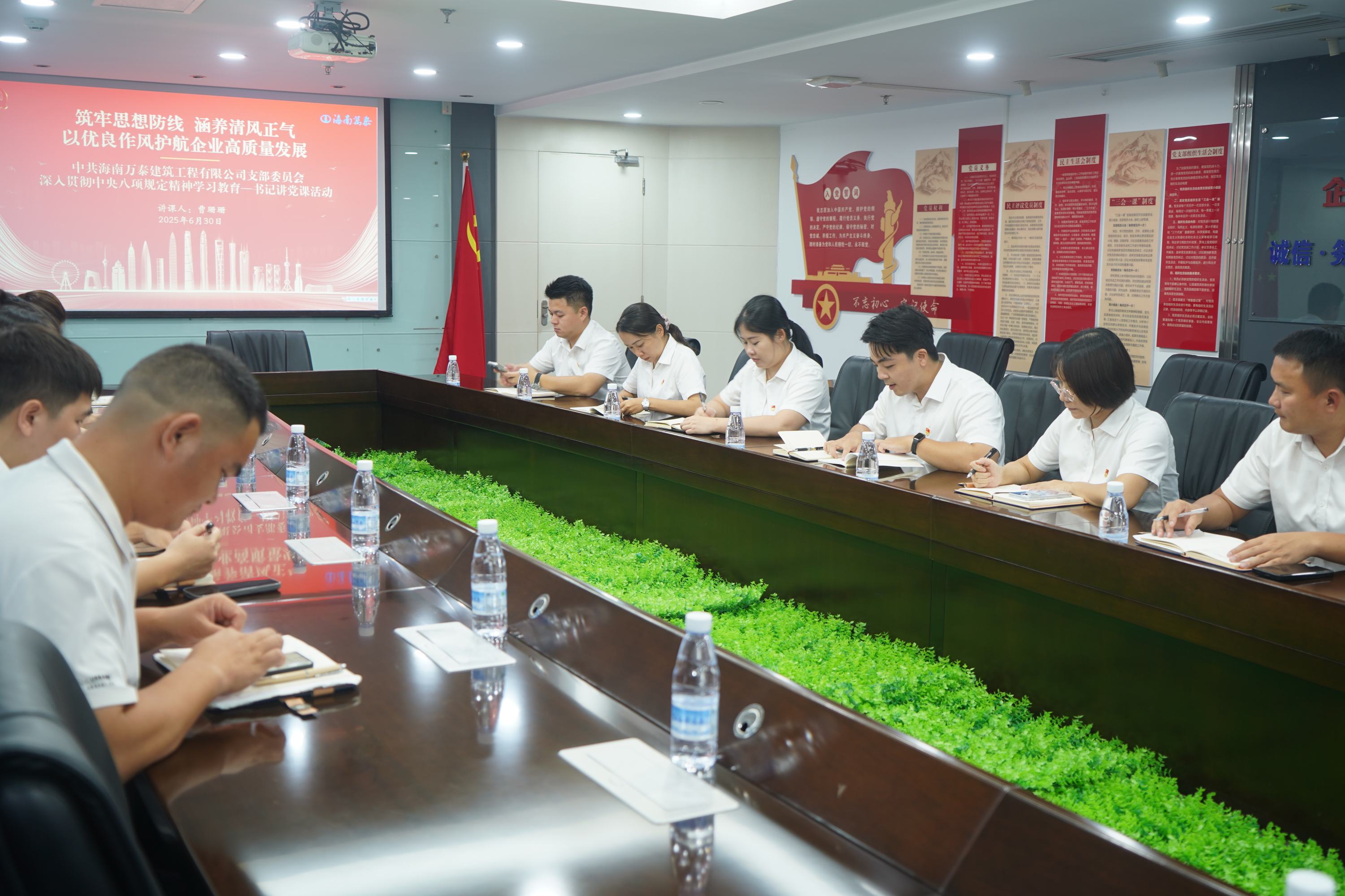 為深入貫徹中央八項規(guī)定精神學習教育,引導黨員干部學深悟透,6 月 30 日下午,海南萬泰公司黨支部在黨建會議室組織開展了深入貫徹中央八項規(guī)定精神學習教育暨書記講黨課活動。本次會議由黨支部書記曹珊珊主持,旨在進一步強化黨員干部的作風建設(shè),推動公司高質(zhì)量發(fā)展。支部黨員及入黨積極分子參加了本次活動。