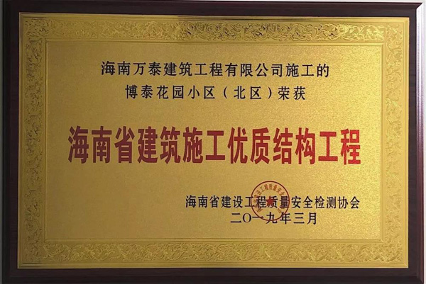 博泰花園小區(qū)(北區(qū))“海南省建筑施工優(yōu)質(zhì)結(jié)構(gòu)”獎